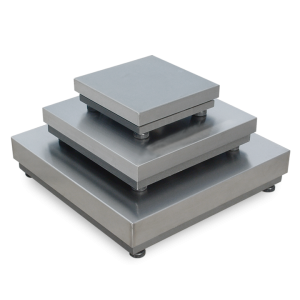 Báscula Mural totalmente em aço inox, formada por uma estrutura que suporta a coluna com os ganchos e um prato rebatível.
